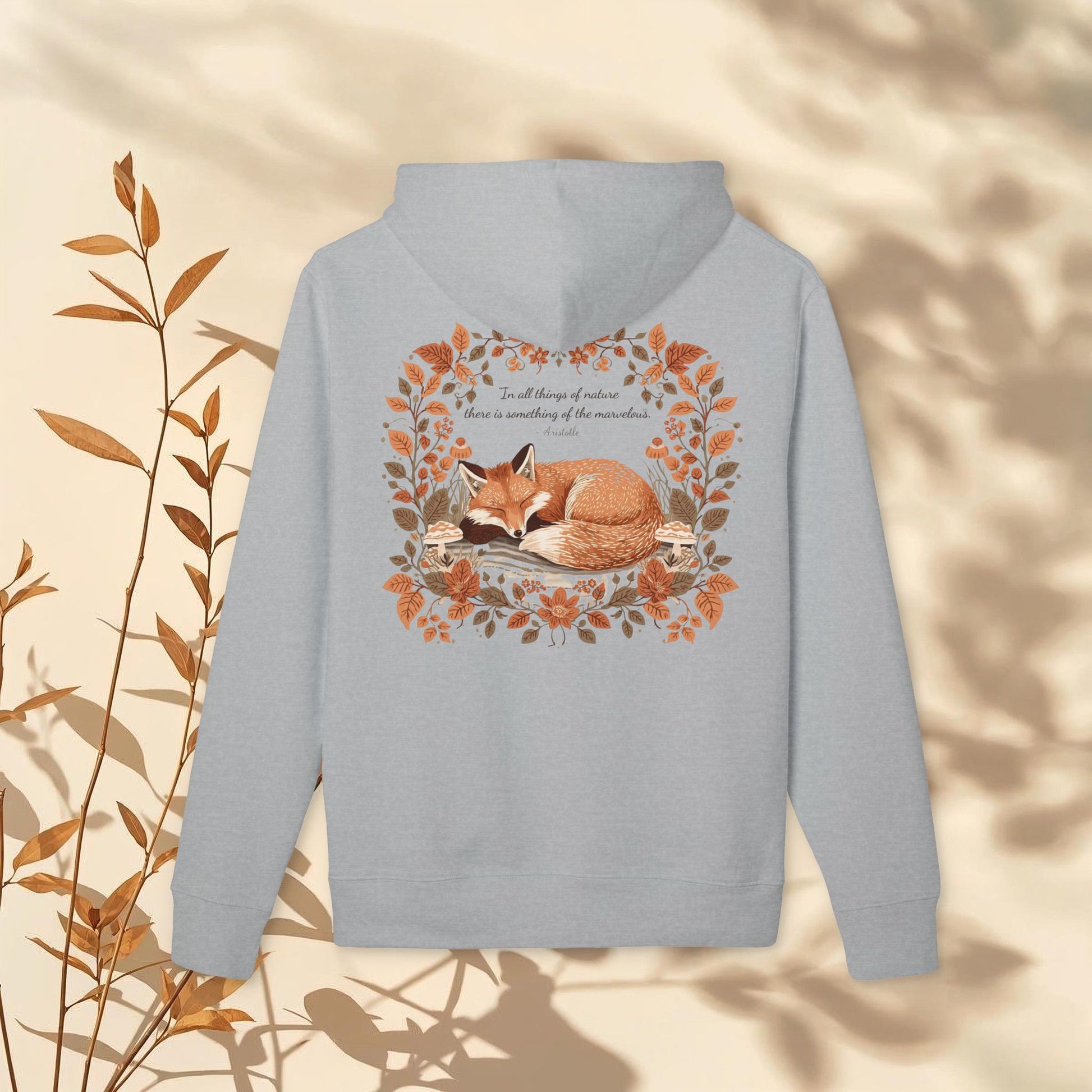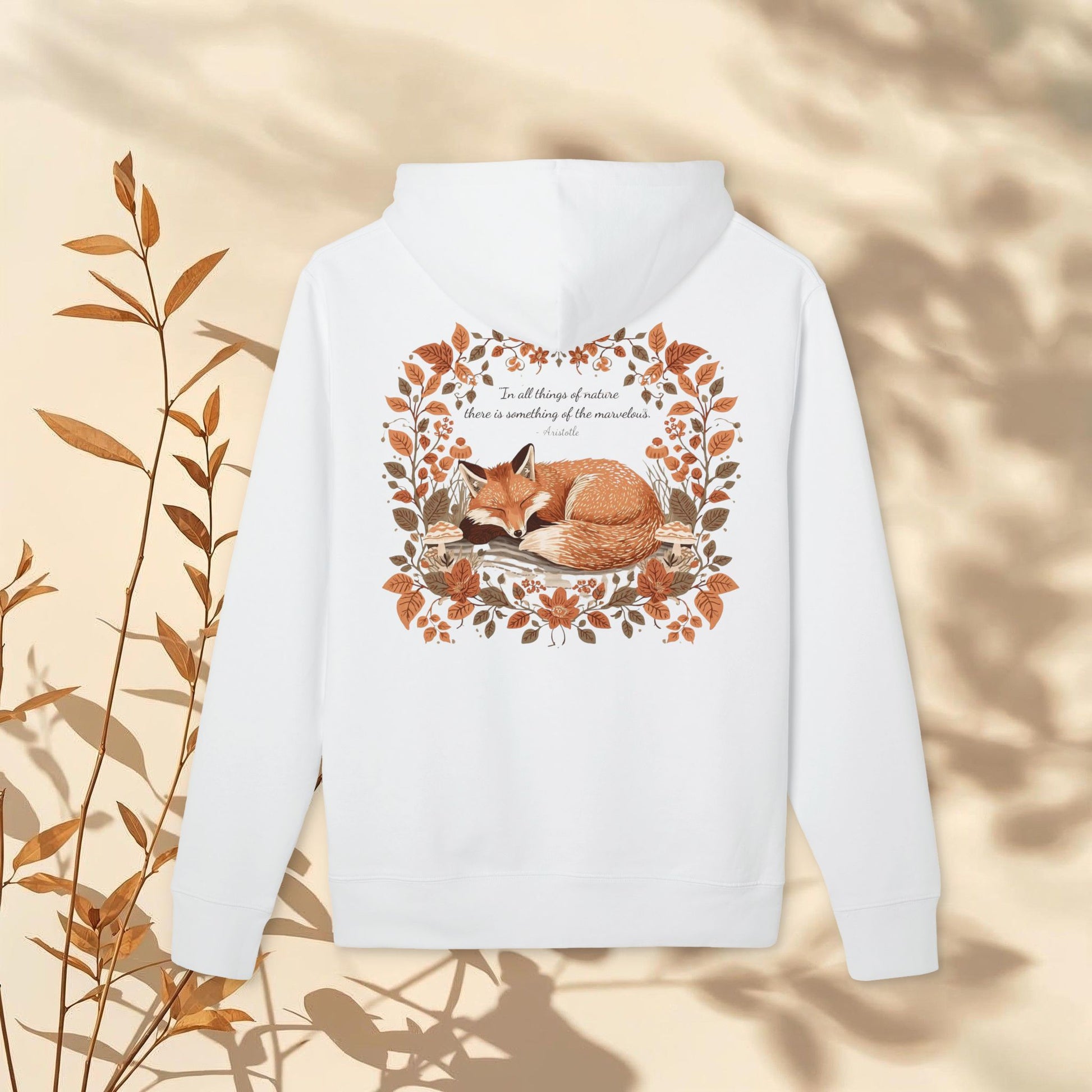 A cozy hoodie featuring a tranquil fox nestled in a beautifully illustrated foliage frame, perfect for nature lovers and those seeking a peaceful vibe. This hoodie is ideal for casual wear or as a gift for birthdays, holidays, or as a treat for yourself.