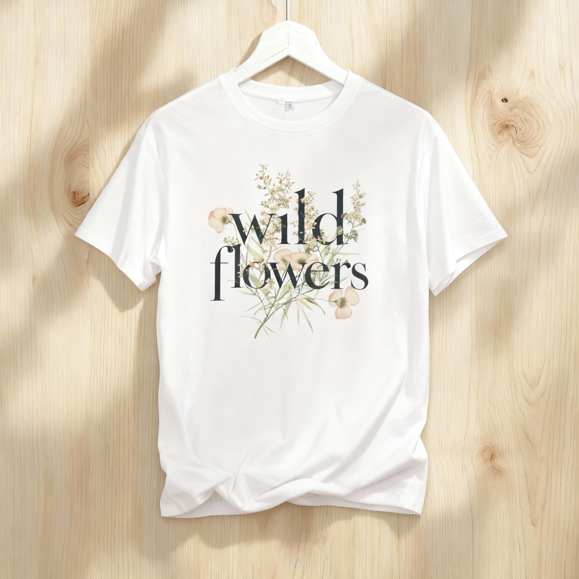 This T-Shirt features beautiful flowers with the quote 'Wild Flowers' on it, giving off a fresh and natural vibe. Perfect for those who love the outdoors and nature. Great for casual wear or as a statement piece. Ideal for nature lovers, gardeners, and individuals who appreciate floral designs. Suitable for spring and summer occasions.
